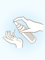 タオルドライの後、IOMISTヘアトリートメントエッセンスを手のひらに出します。